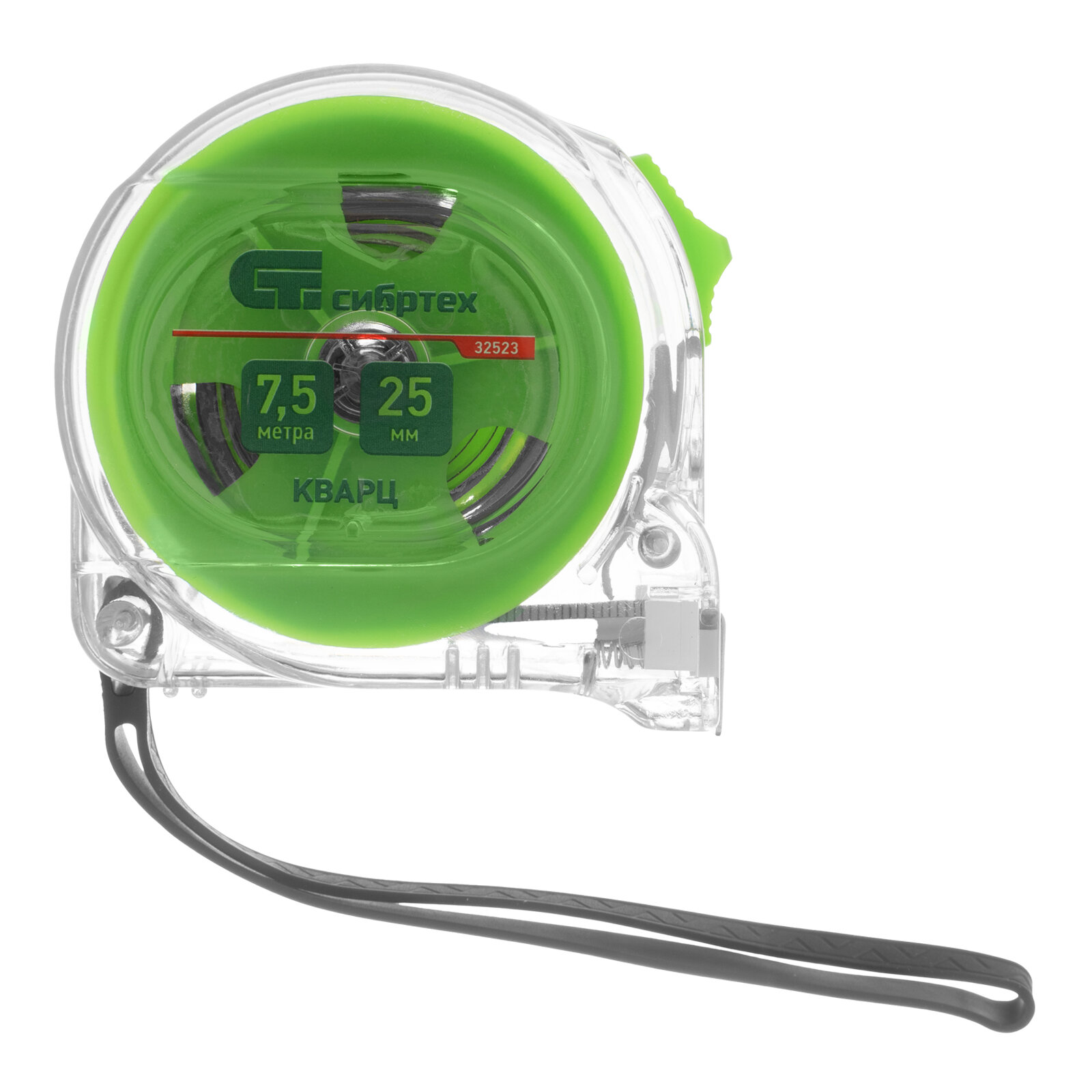 10 цен на Рулетка Сибртех Кварц прозрачный корпус, амортизатор, 7, 5 м х 25 мм 32523