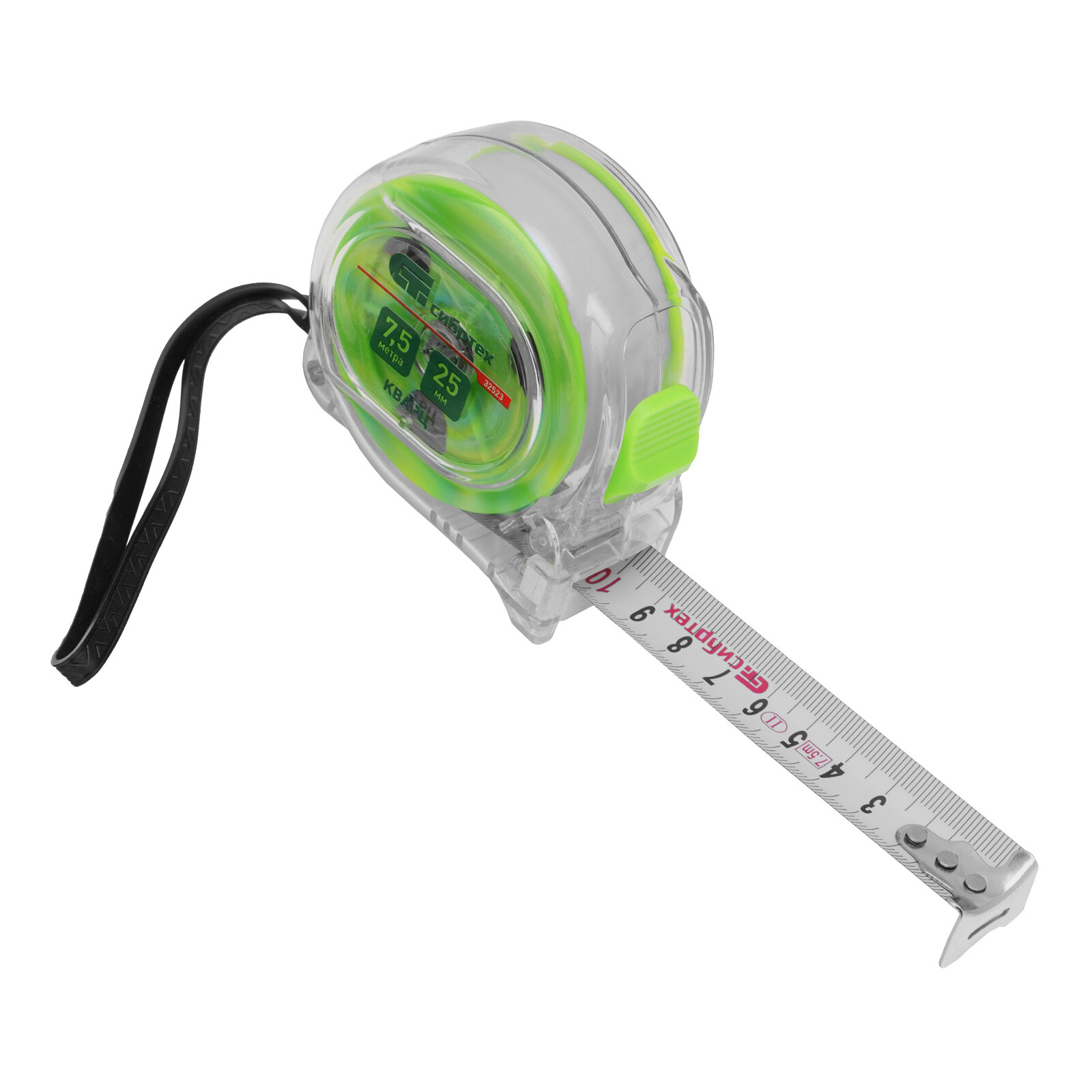 Рулетка Сибртех Кварц прозрачный корпус, амортизатор, 7, 5 м х 25 мм 32523 информация: