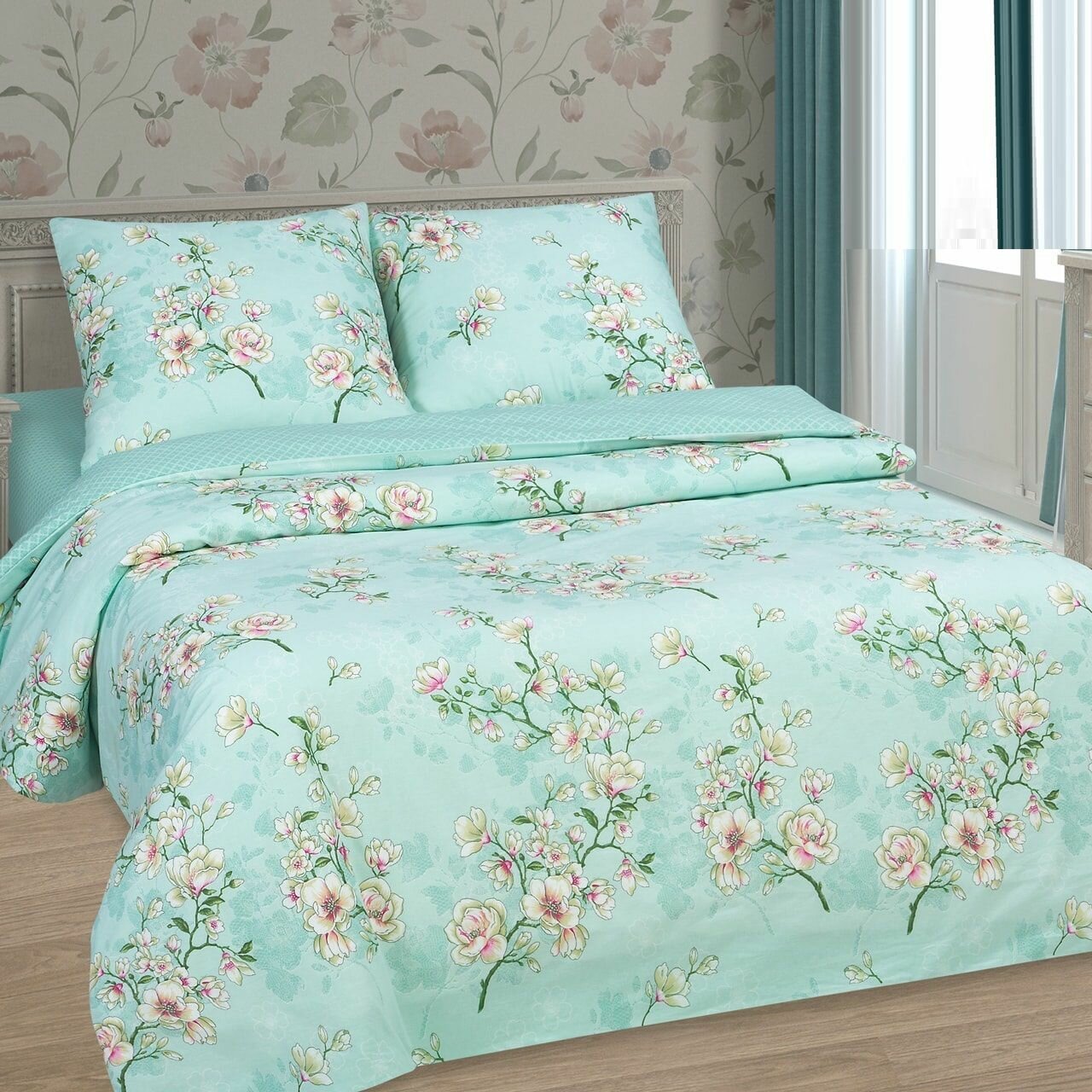 Комплект постельного белья АртПостель, "Миндаль" 1,5 спальный поплин, цветы, зеленый