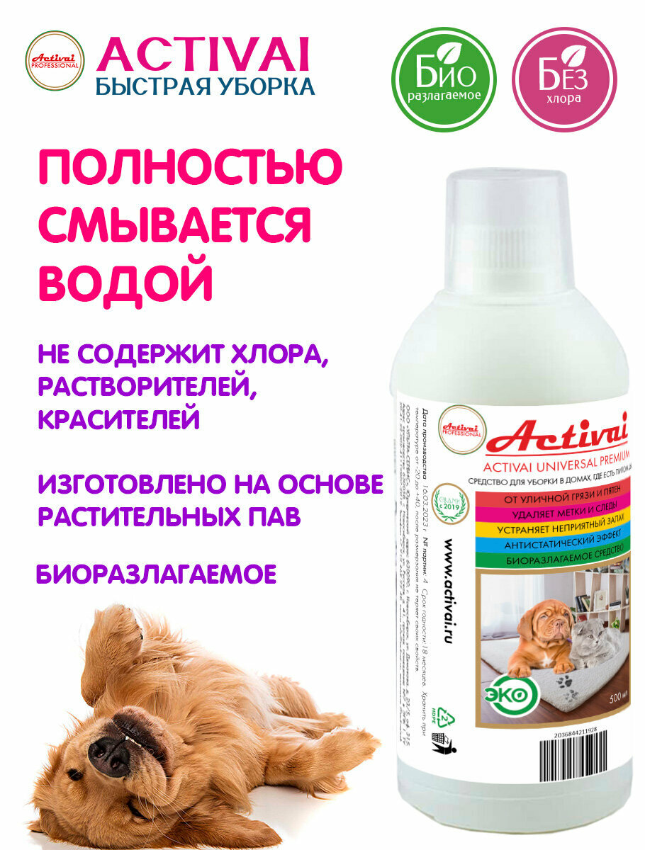 Средство для уборки за животными, нейтрализатор запаха, антигадин для кошек, нейтрализатор запаха кошачьей мочи, от запаха животных, бытовая химия для дома, концентрат, 500 мл Быстрая уборка Activai PROFESSIONAL информация: