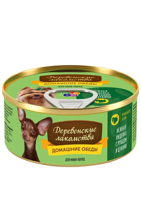 Отзывы на Деревенские лакомства консервы для мини-пород Домашние обеды Нежная индейка с рубцом и цукини 100г (5штук)