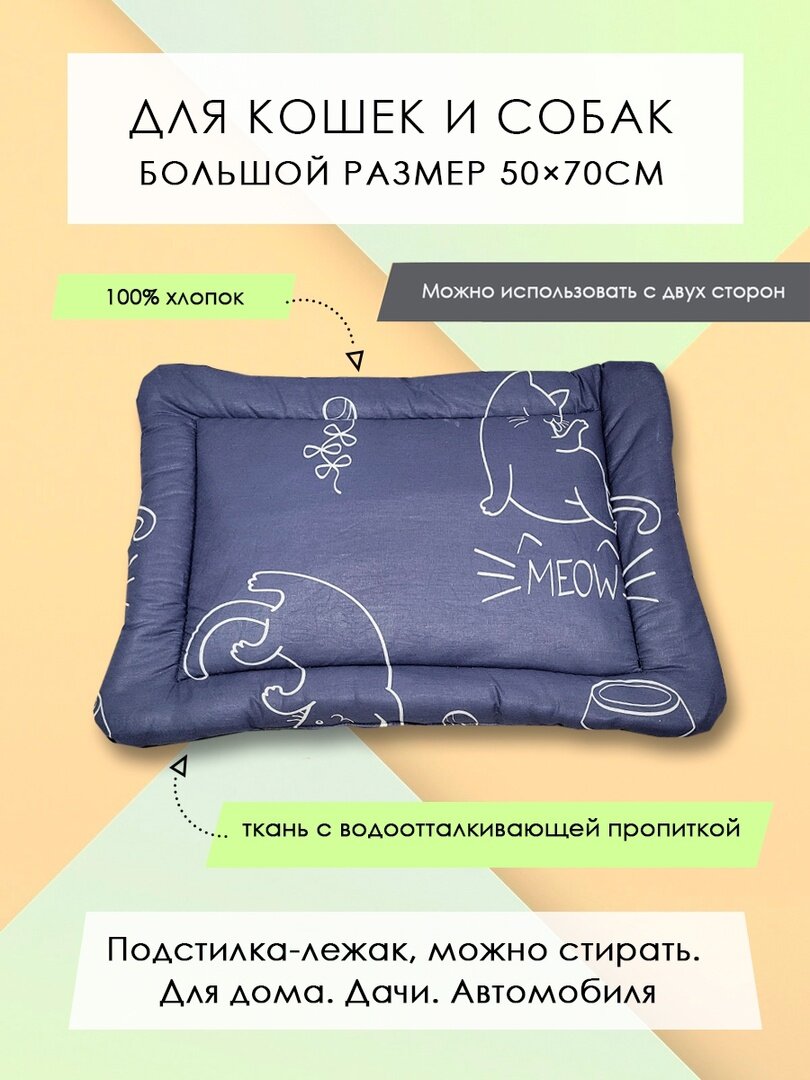 Подстилка-лежак для кошек/собак "Кошки на синем" 50х70см 499 ₽