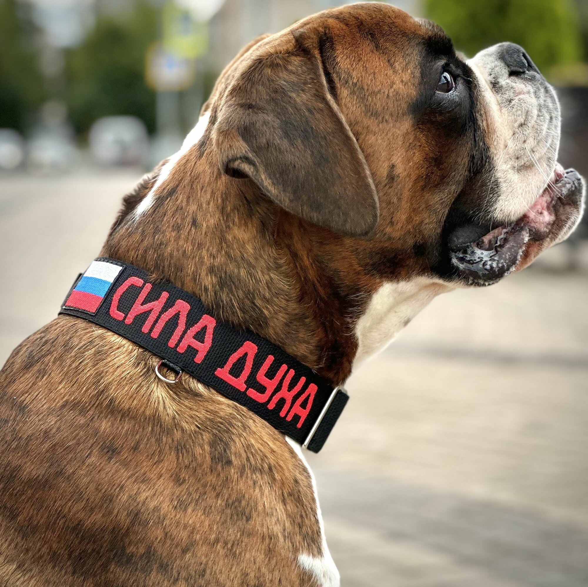 Ошейник с вышивкой не ссы я сытый YkkaCollar для собаки, шириной 6 см на обхват шеи 48-56 см