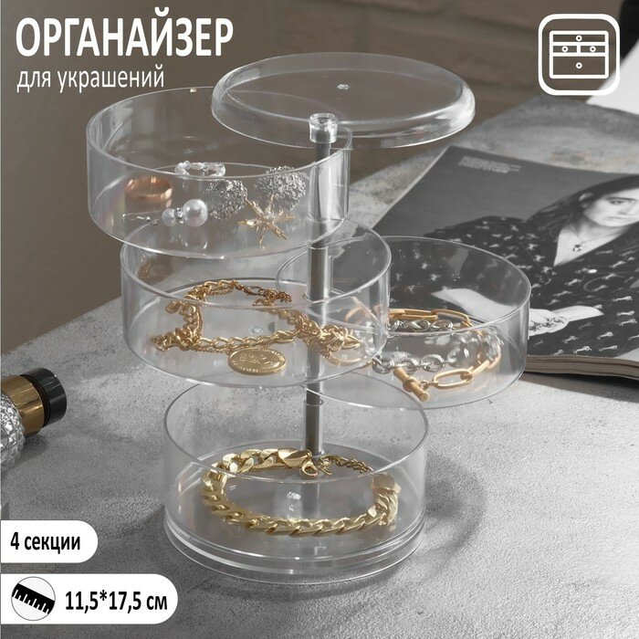 Подставка для украшений "Трансформер" 4 секции, 11,5*17,5см, цвет прозрачный 9474185