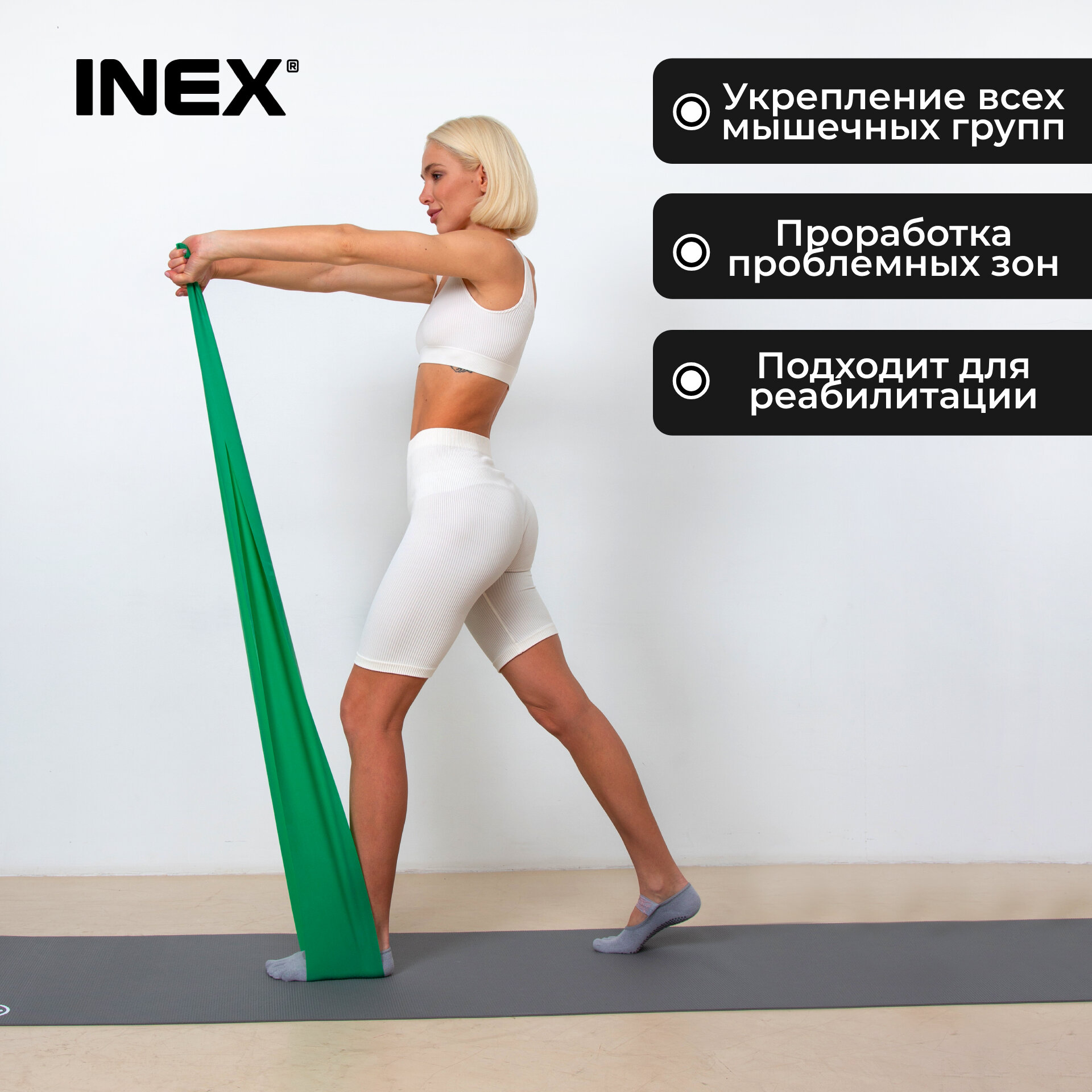 Отзывы на Фитнес резинка / Лента для пилатеса INEX Body-Band, длина 2,5 м, слабое сопротивление, зеленый