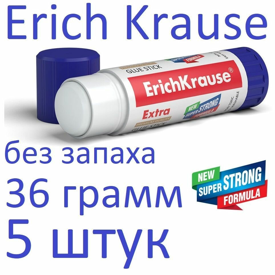 Клей-карандаш ErichKrause Extra PVP 36г 14443 набор 5 штук информация: