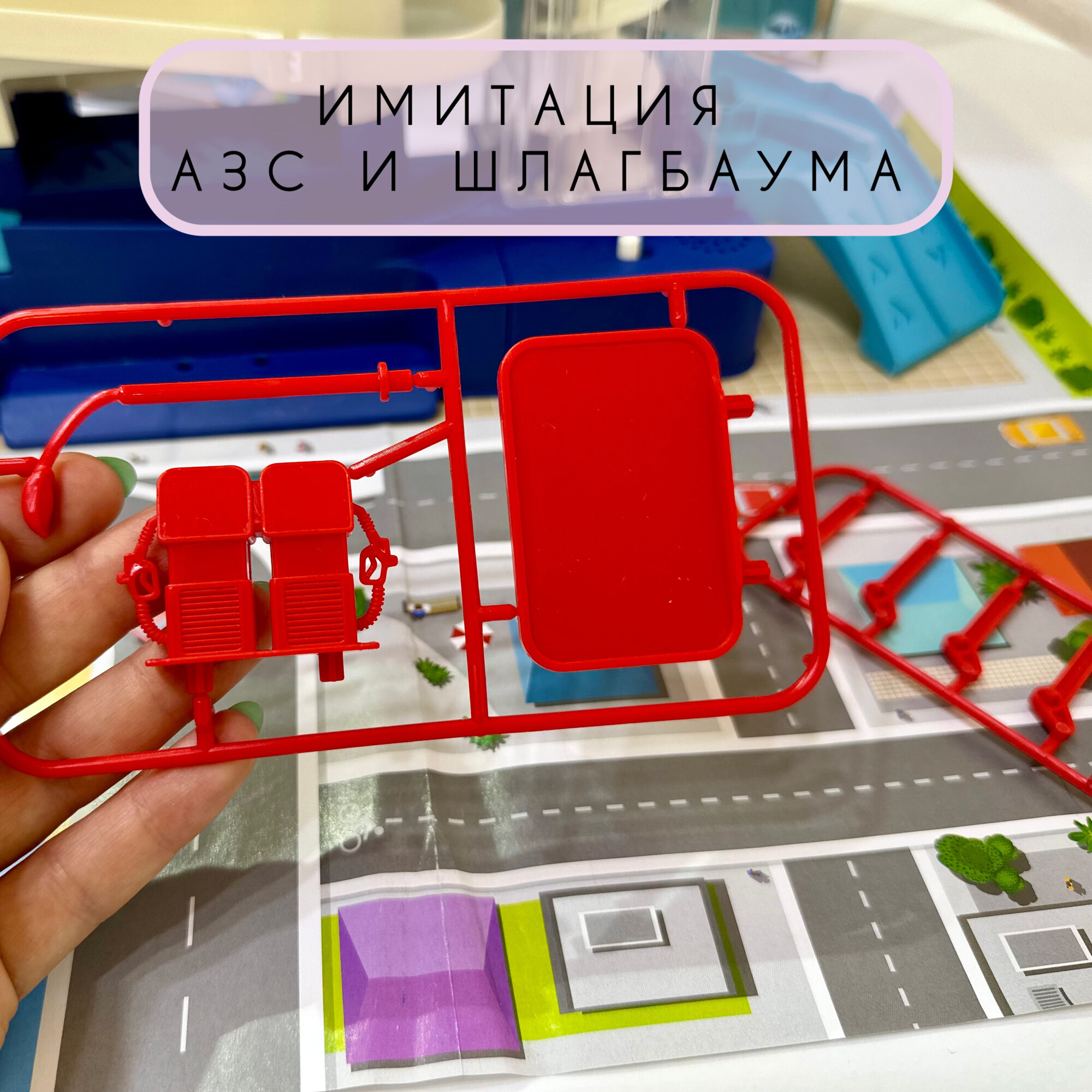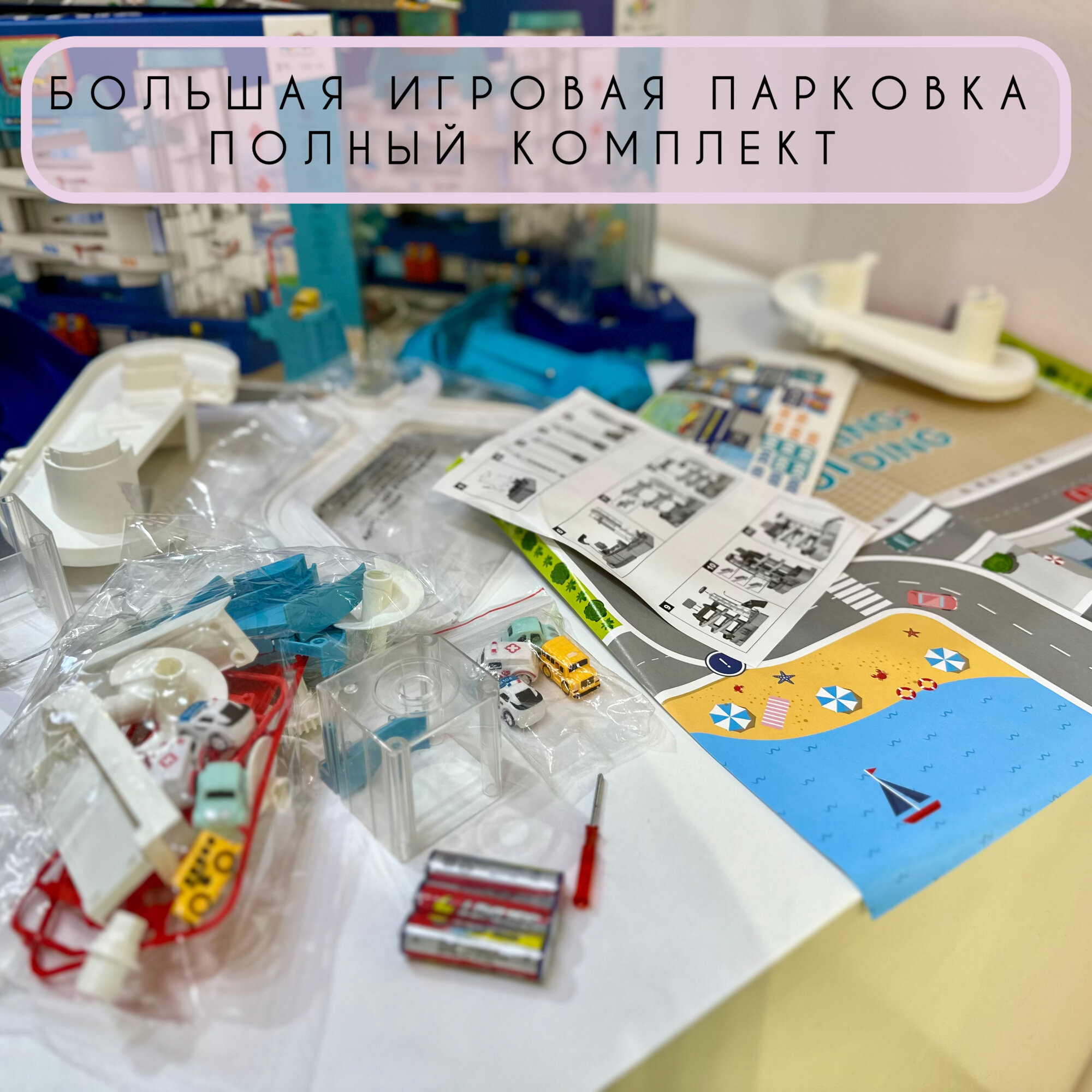 | Комплектация | все необходимые элементы для здания (парковки) машинки - 8 шт батарейки 3 шт АА отвертка для удобства бумажная коврик-карта наклейки инструкция |
