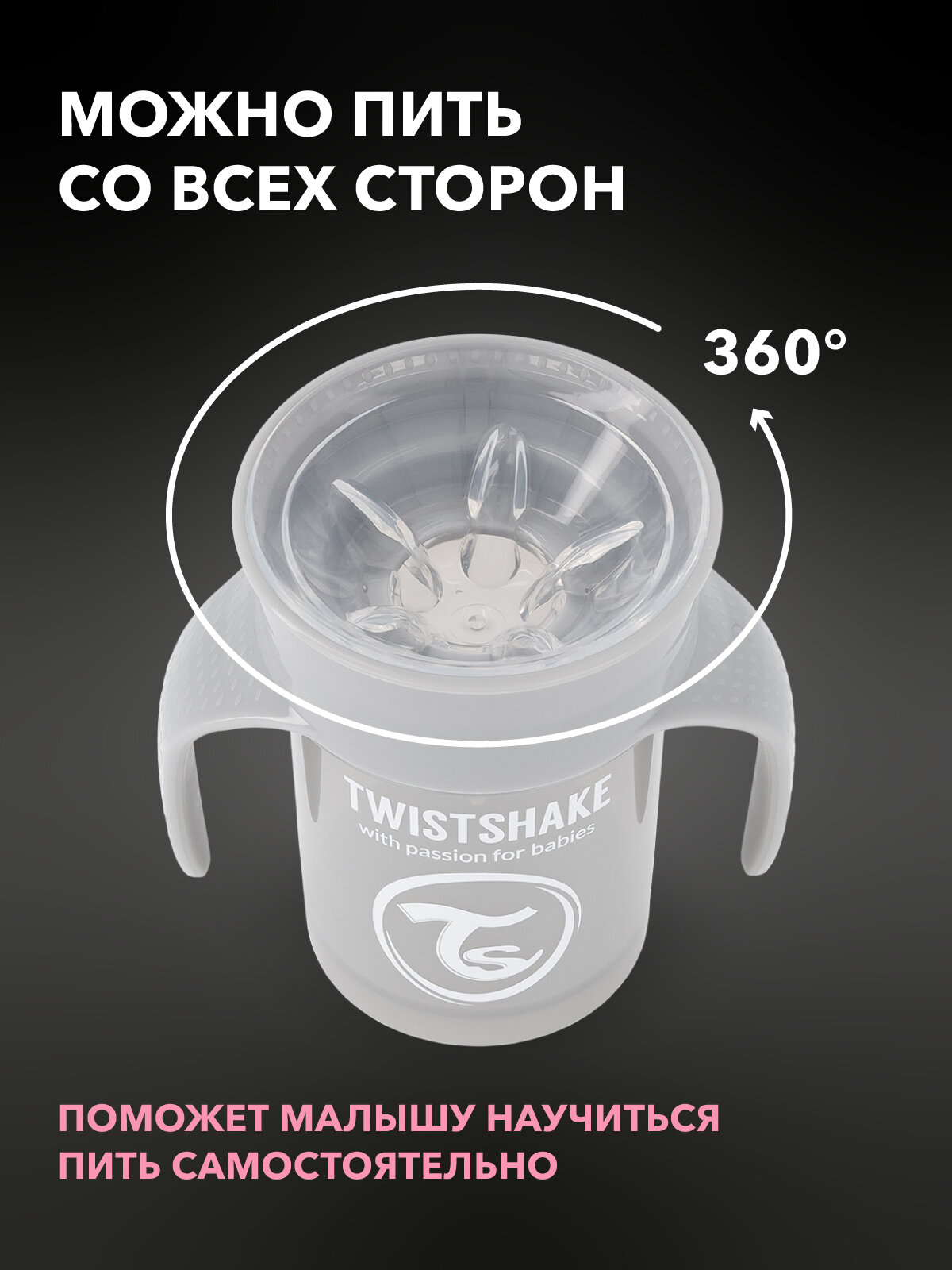 Детский поильник непроливайка Twistshake 360 cup 230 мл. Пастельный серый (Pastel Grey). Возраст 6+ мес. информация: