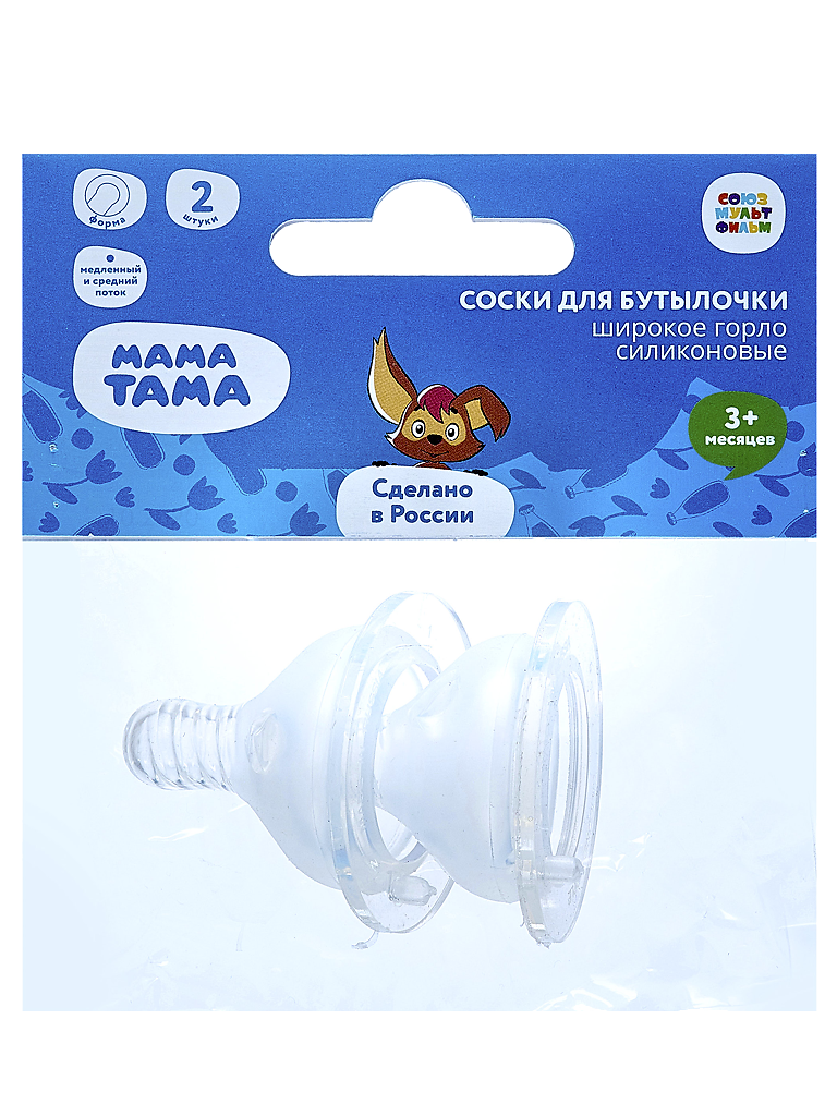 | Комплектация | Соска МАМА ТАМА для бутылочек с широким горлышком,2шт |