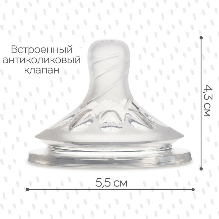 Антиколиковая соска силиконовая МирДетства для бутылочки с широким горлом, точечное отверстие и быстрый поток 6+, 1 шт.