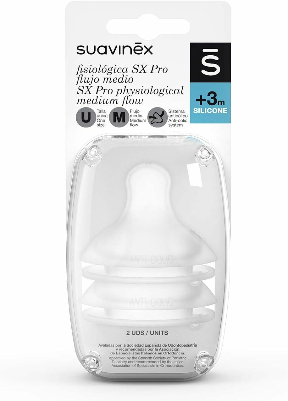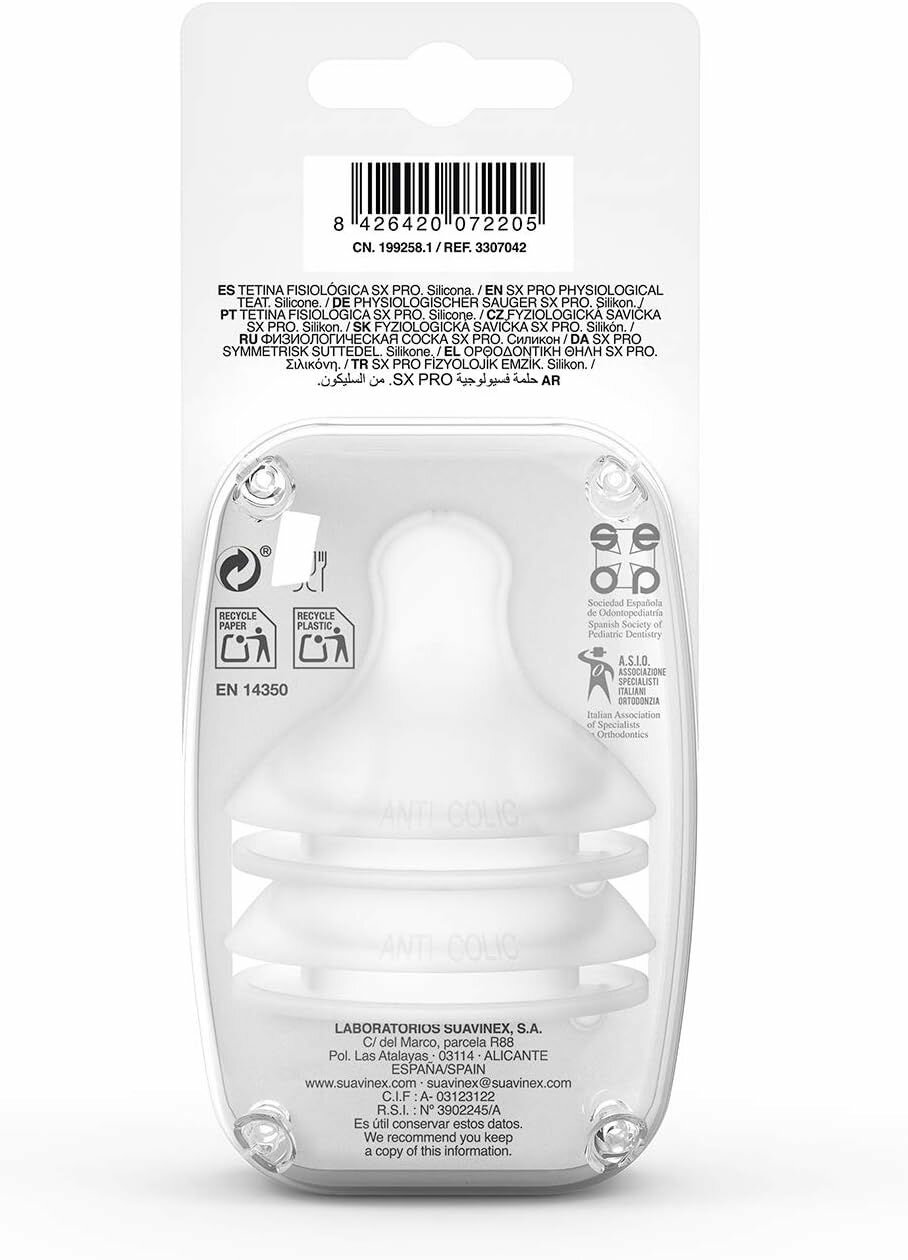 Набор (2шт) силиконовых физиологических сосок для бутылочек Suavinex SX Pro с 6 месяцев + с противоколиковым эффектом 551 ₽