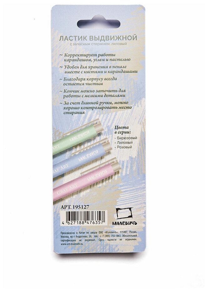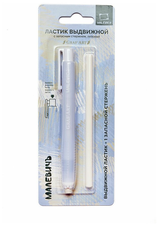 Ластик-карандаш выдвижной Малевичъ с запасным ластиком, лиловый информация: