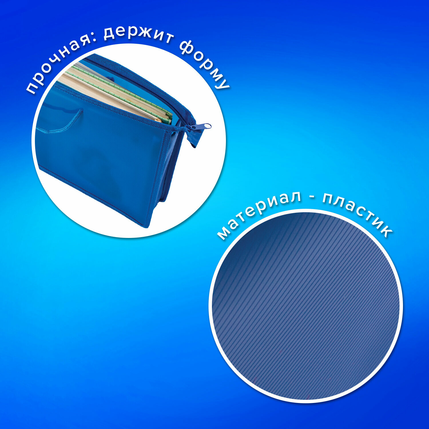 Папка на молнии с ручками пифагор, А4, 1 отделение, пластик, 55 мм, молния сверху, однотонная синяя, 228235 информация: