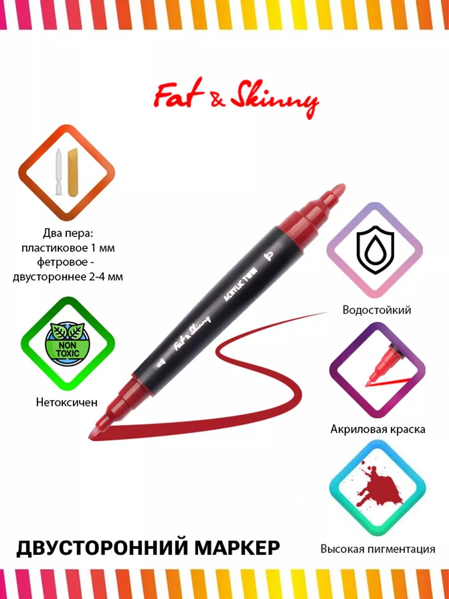 10 цен на Акриловый двусторонний маркер Fat&Skinny Acrylic Twin Crimson Red бордовый