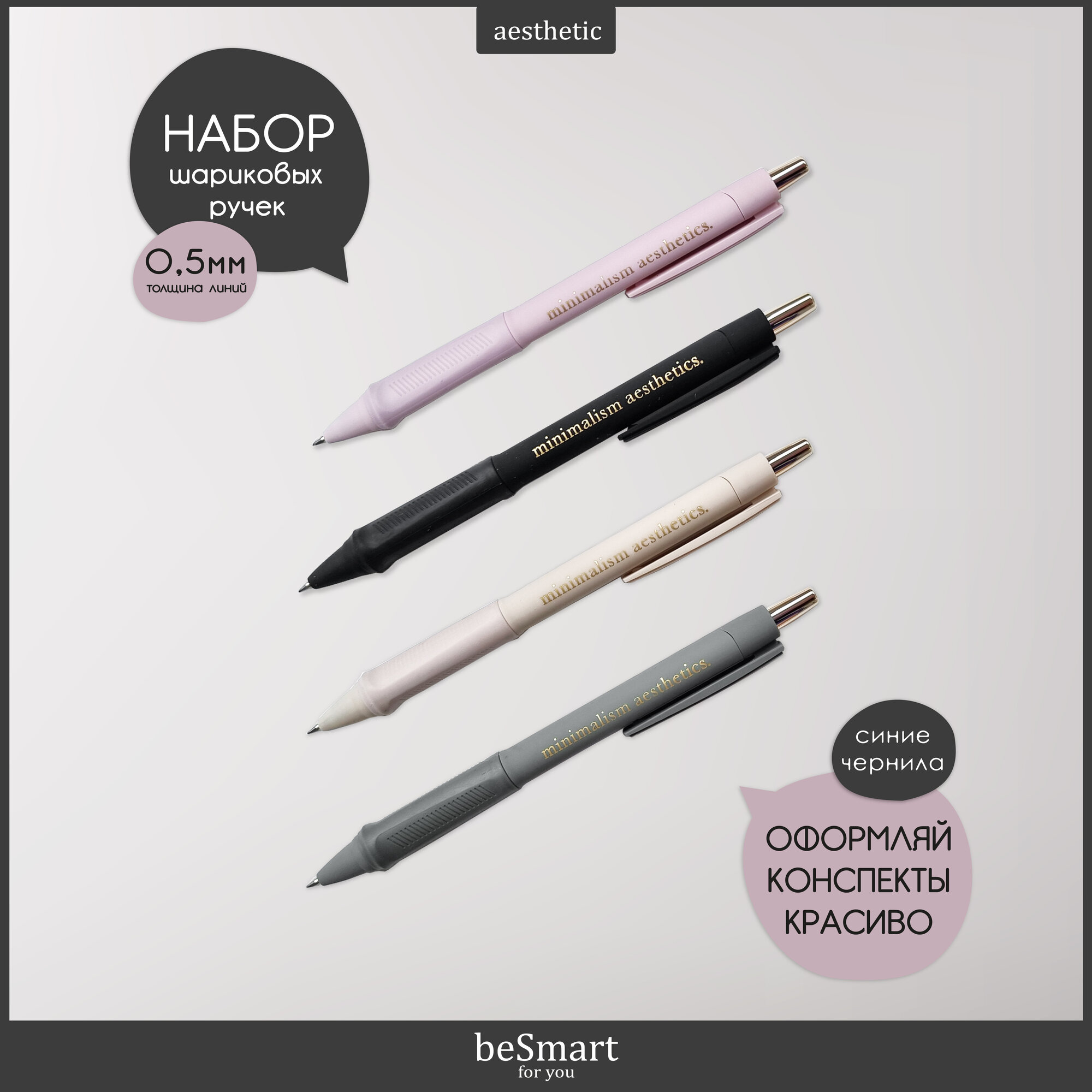 Ручка шариковая автоматическая beSmart "Aesthetics" синие чернила, толщина линии 0,5 мм, набор 4 шт №2 информация: