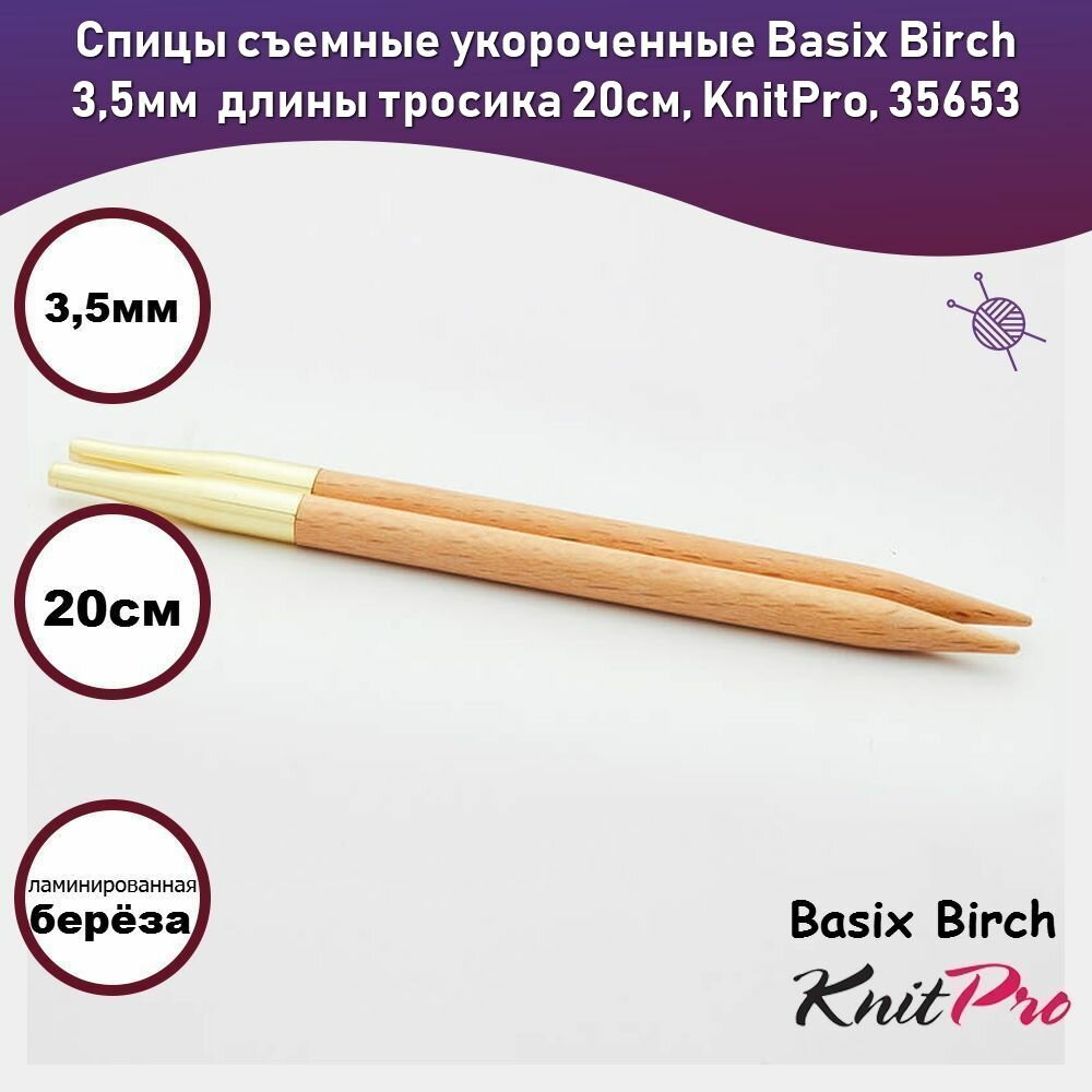 35653 Knit Pro Спицы съемные для вязания Basix Birch 3,5мм для длины тросика 20см, береза, натуральный, 2шт