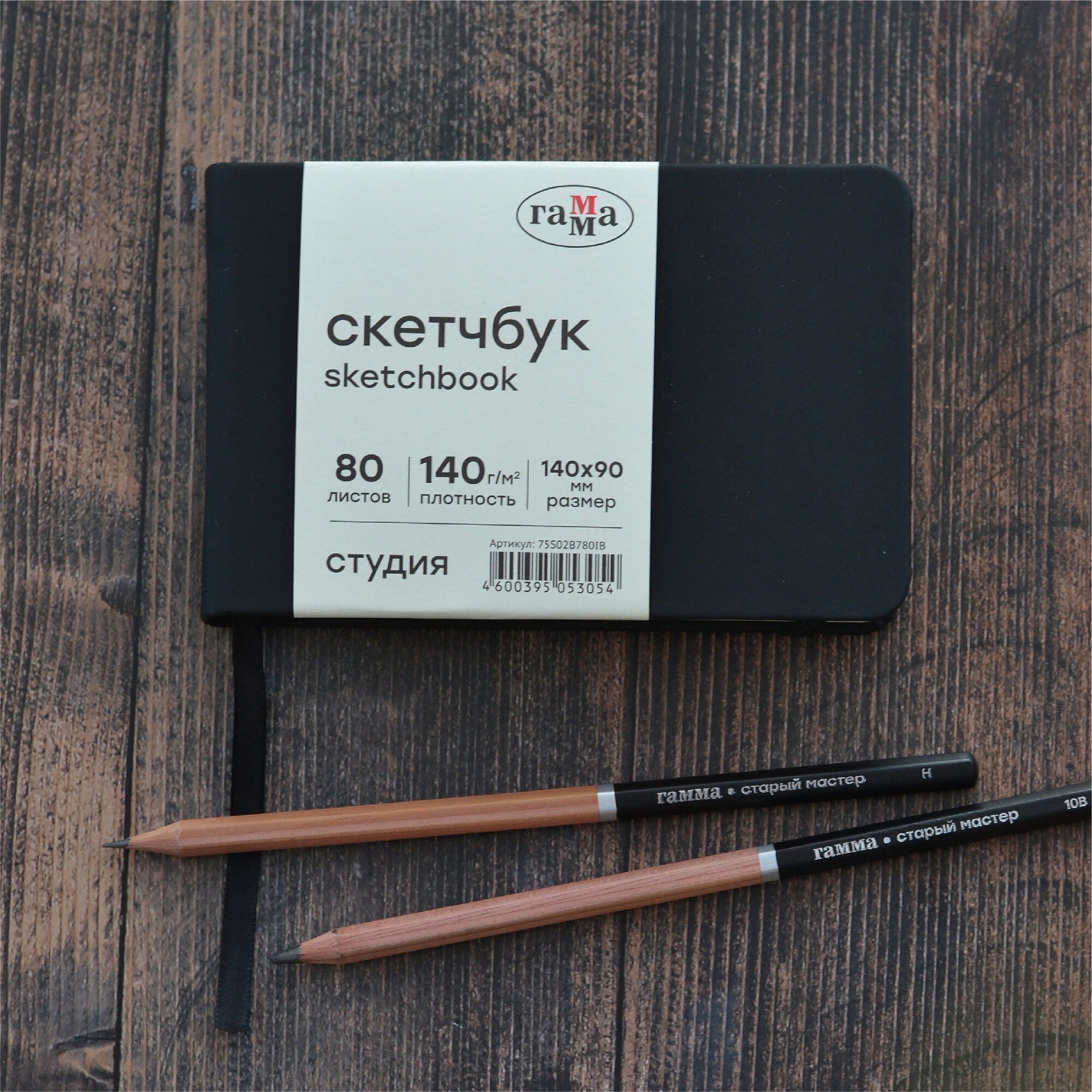 10 цен на Скетчбук 80л., 140*90 Гамма "Студия", черный, твердая обложка, на резинке, слоновая кость, 140г/м2