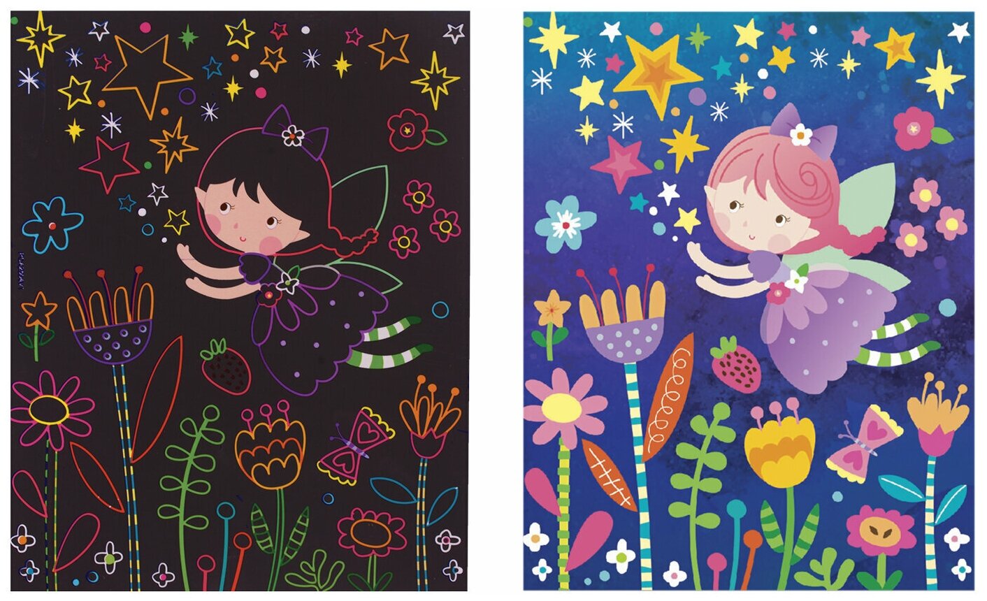 Гравюры Юнландия "Русалка и Фея", цветная основа, формат A5, в комплекте штихель, 2 штуки