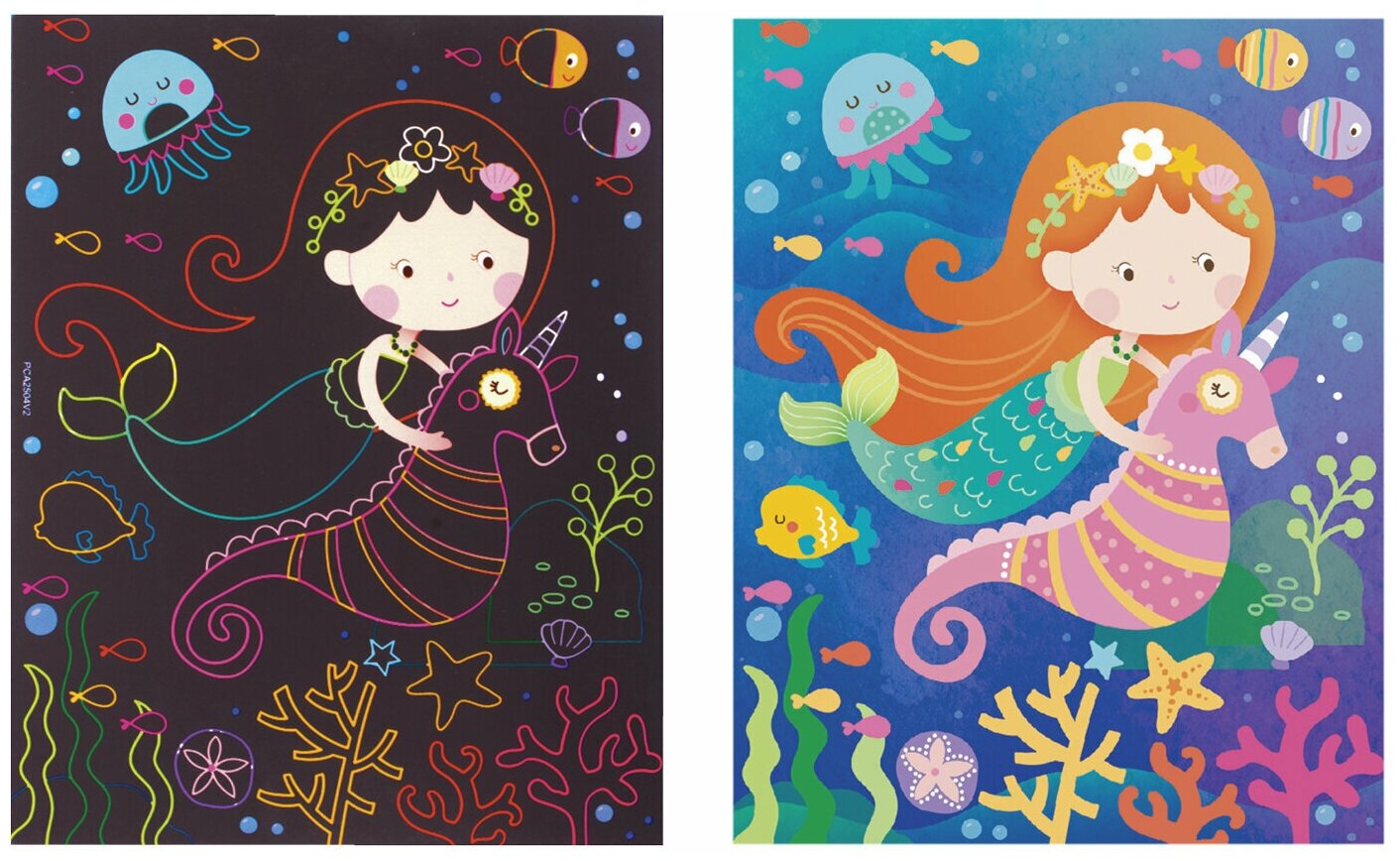 Гравюра магическая "Русалка и фея", А5, 2 основы в комплекте, с трафаретом, юнландия, 662691, в наборе 2 компл.