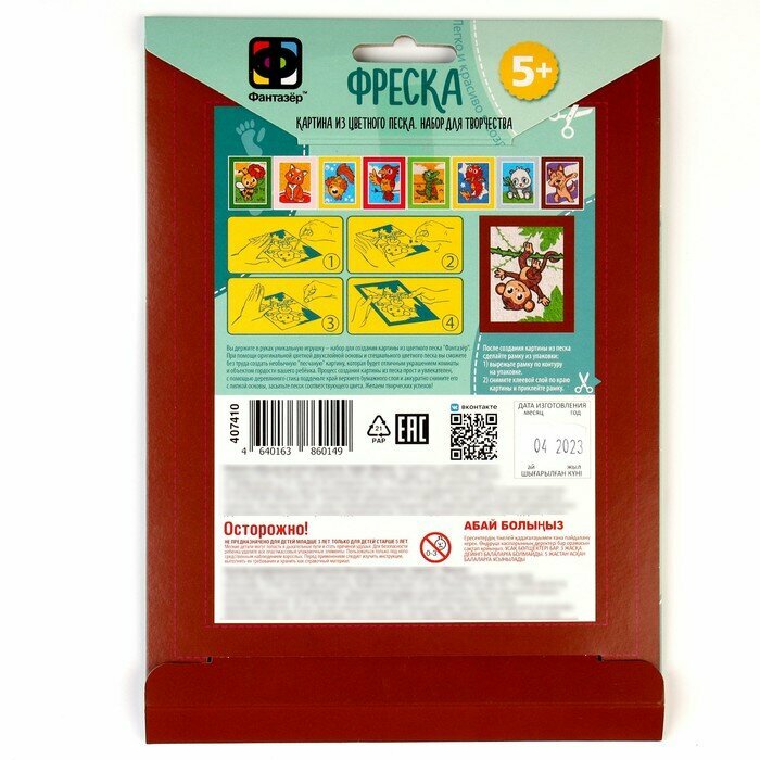 Фреска Фантазер "Веселый зоопарк", Обезьянка, картина из цветного песка (407410) информация: