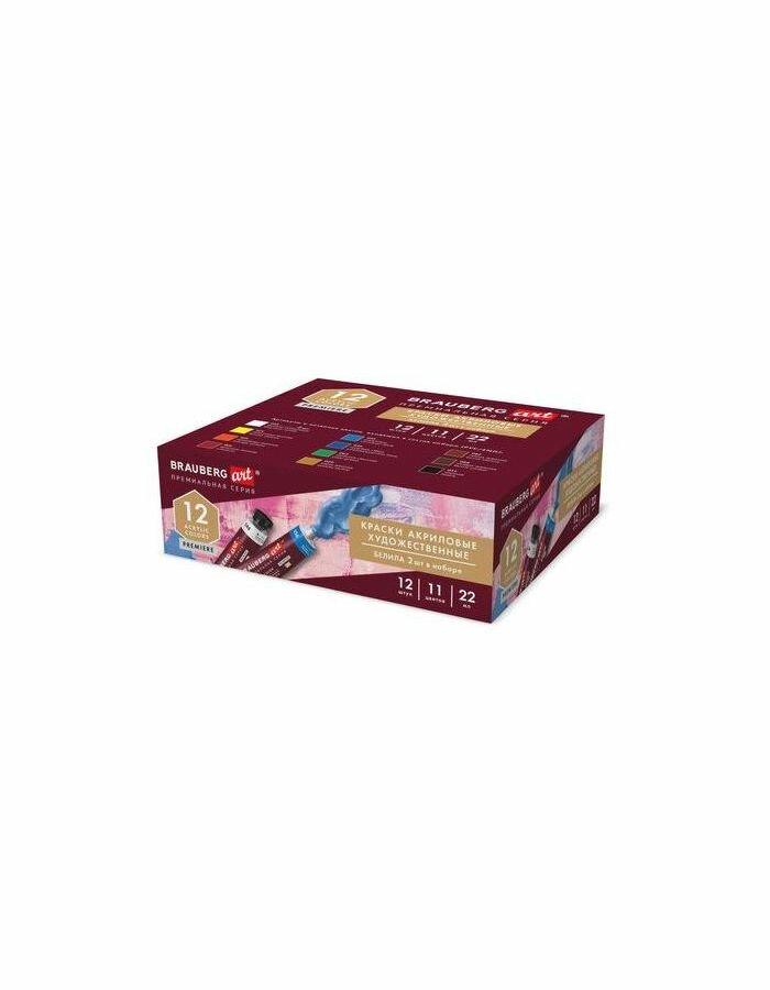 Краски акриловые художественные BRAUBERG ART PREMIERE, набор 12 шт, в тубах по 22 мл, 191781 информация: