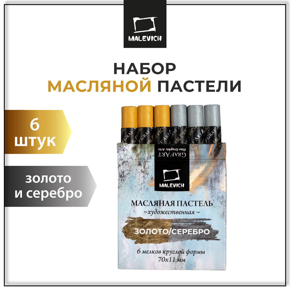 Масляная пастель Малевичъ художественная, 3 шт серебро и 3 шт золото информация: