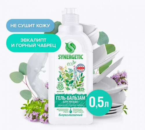 Отзывы на Гель-бальзам для мытья посуды Synergetic Эвкалипт и Горный Чабрец, гипоаллергенный, 500 мл