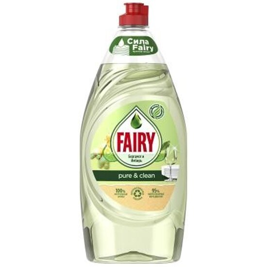 Средство для мытья посуды Fairy Pure&Clean, Бергамот и Имбирь, 100% Натуральный Аромат, 900 мл