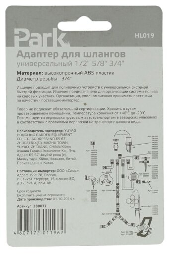 | Дополнительная информация | универсальный адаптер для шлангов 1/2", 5/8", 3/4" |