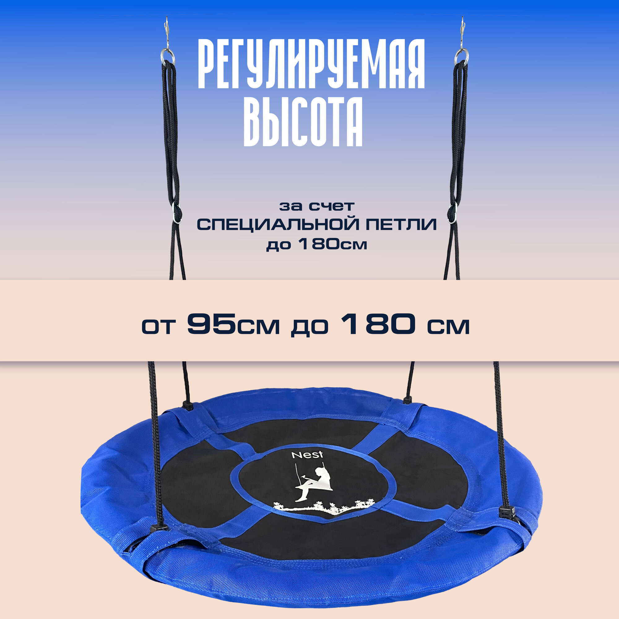 10 цен на Кресло гамак подвесное Nest, качели гнездо садовые подвесные, качалка диаметр 100 см, синий, черный, АМИ мебель