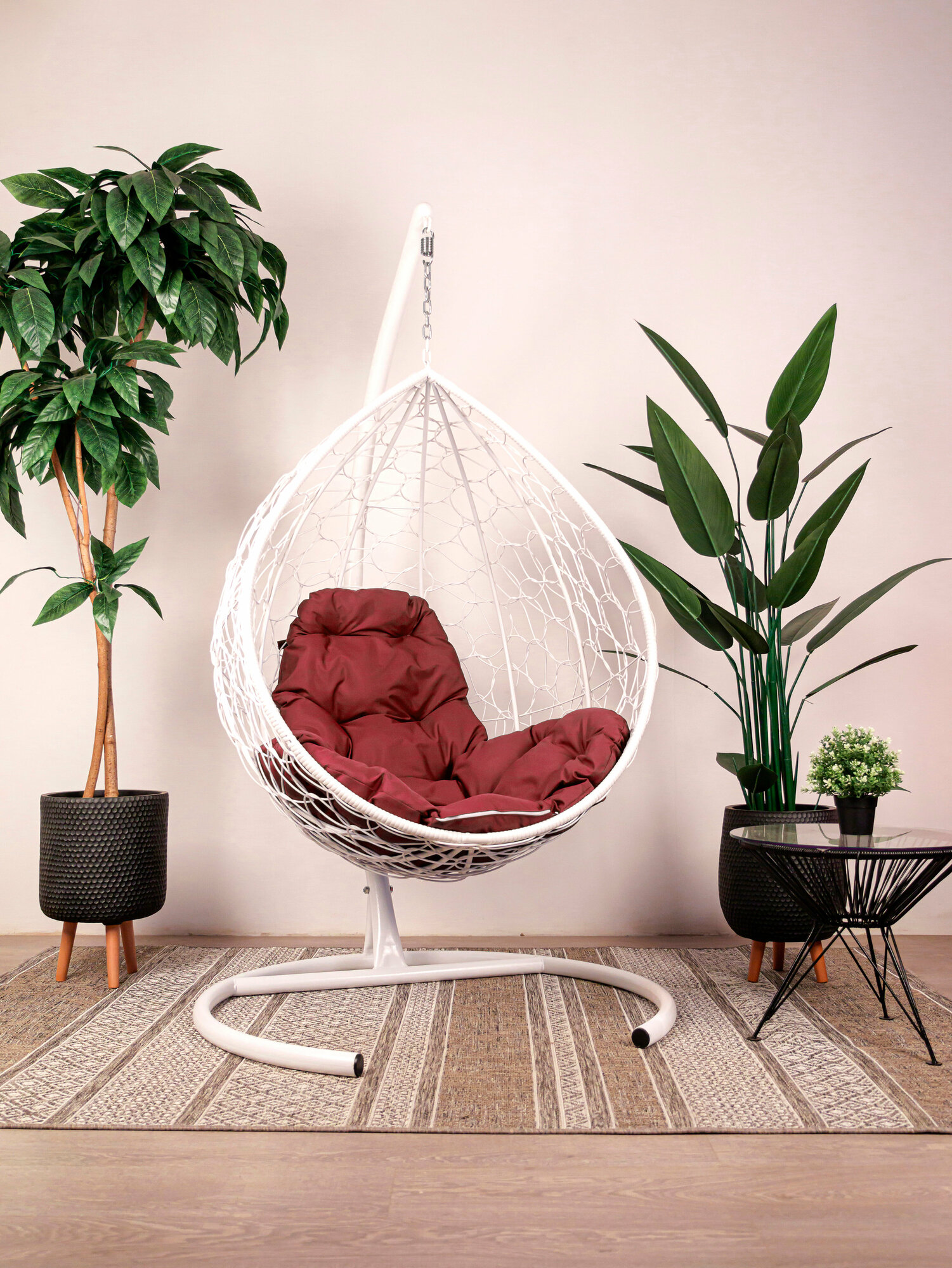Кресло кокон W-GROUP Капля с ротангом, 98х186 см, до 120 кг белый/бордовый информация: