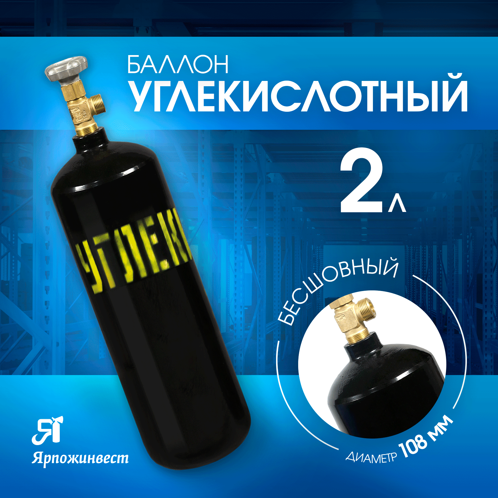 Баллон газовый для углекислоты 2 л, Ярпожинвест, бесшовный/ Пустой без газа информация: