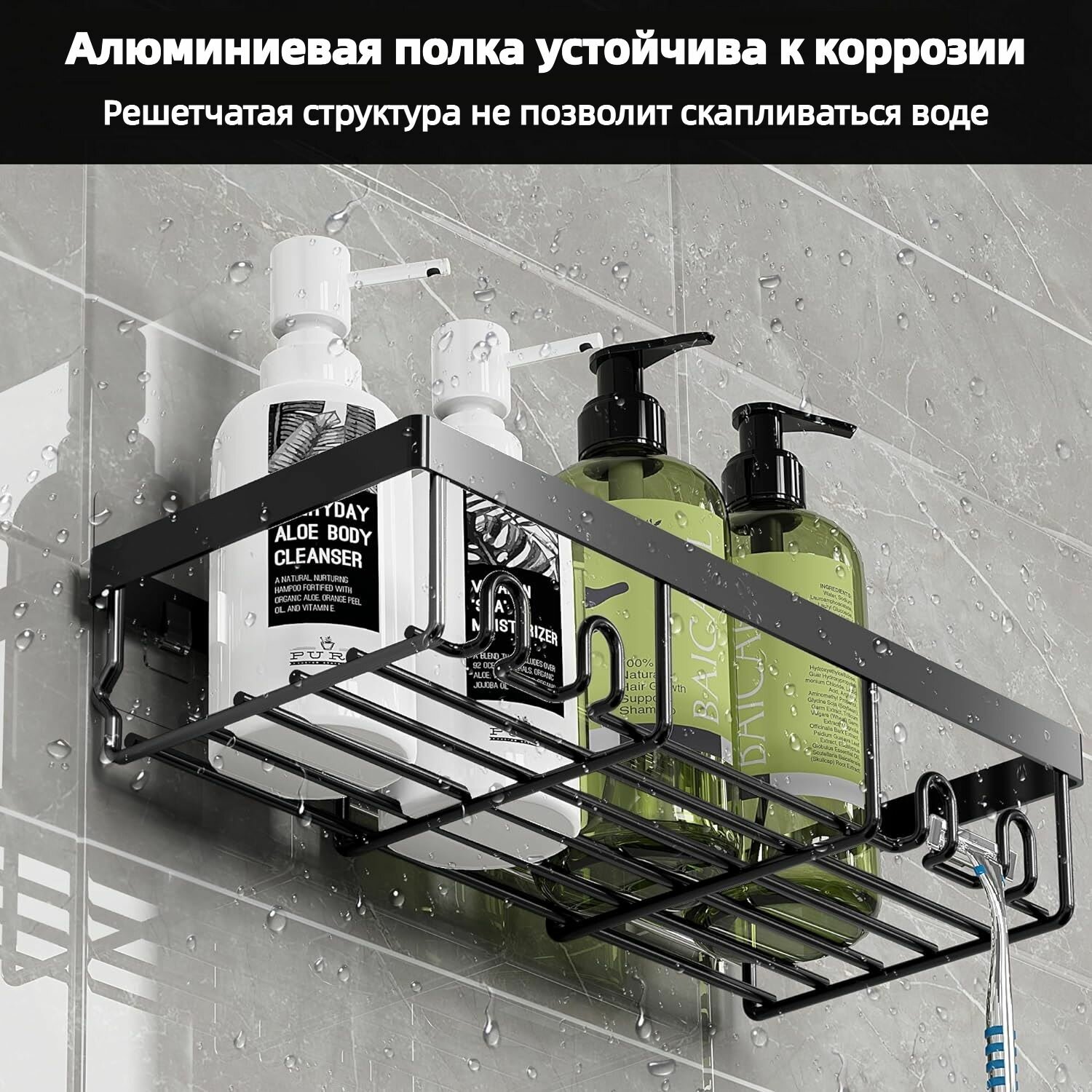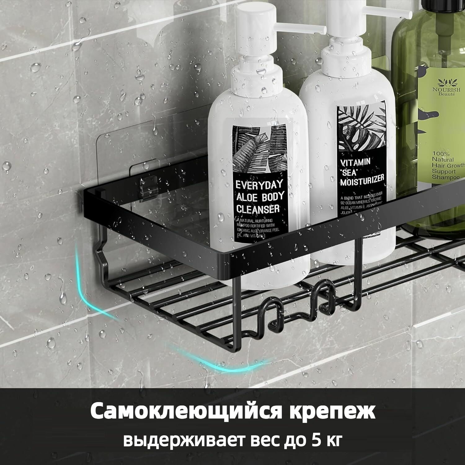 Набор самоклеющихся полок для ванной из 2 штук черные информация: