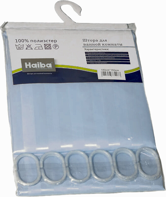 Haiba Штора для ванной комнаты, 180-180 см, 12 колец, полиэстер, белый, HB74001 (арт. 806283)