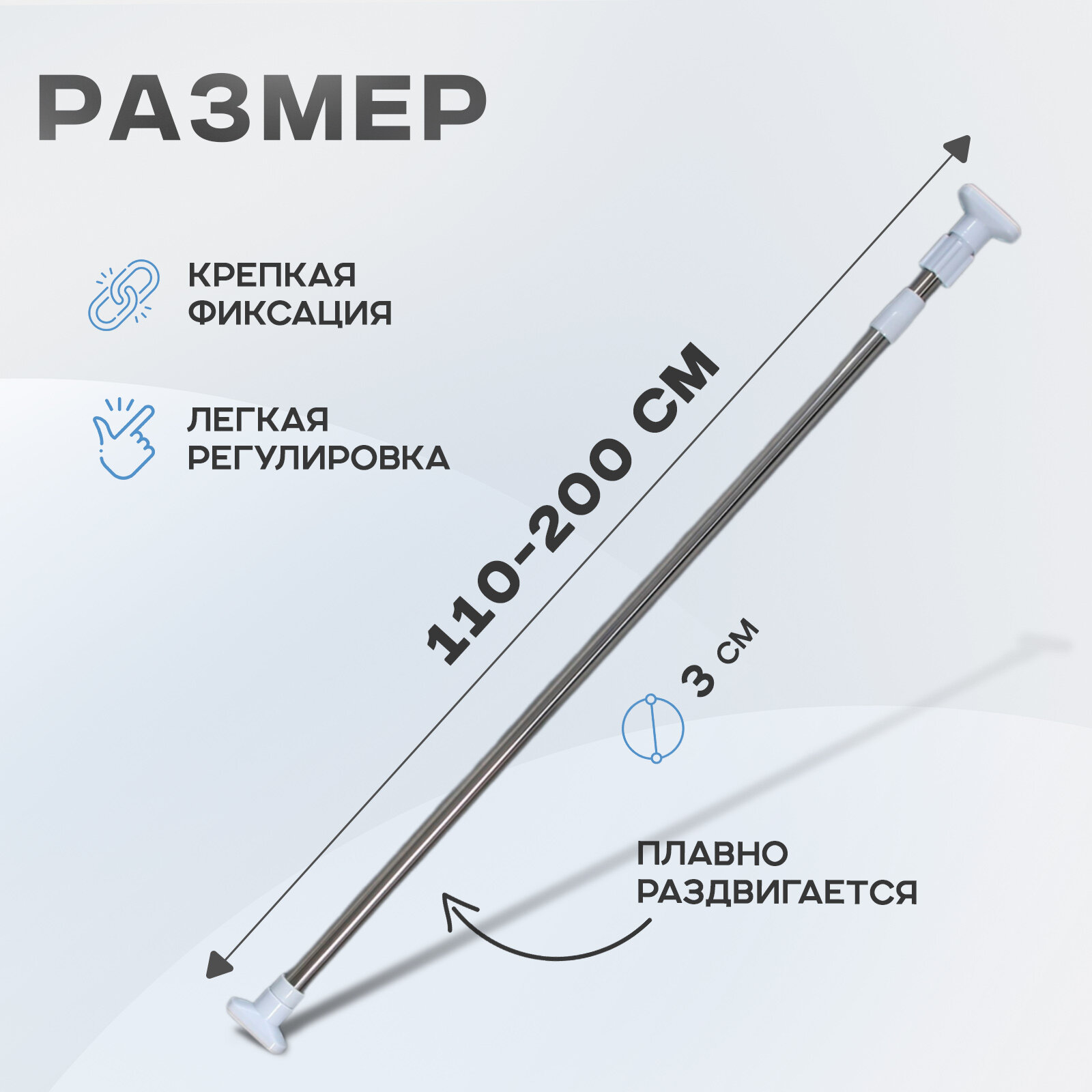 | Подробная комплектация | Карниз для ванной комнаты, телескопический, 110-200 см, усиленный, нержавеющая сталь |