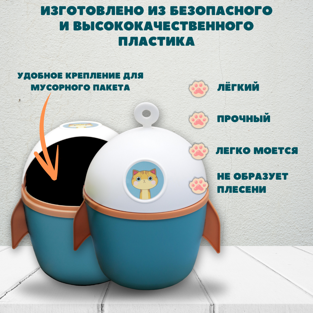 Мусорка настольная, ведро с крышкой, корзина для мусора "Rocket", blue 804 ₽