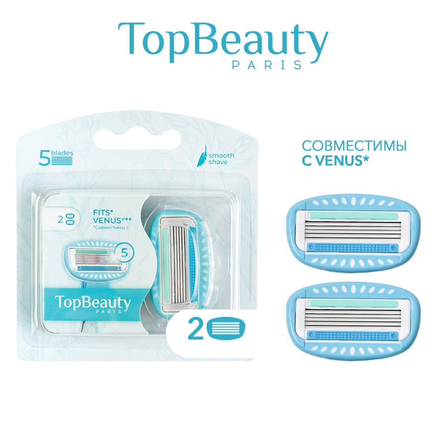 Кассеты для бритвенных станков TopBeauty Paris Cменные женские, 5 лезвий, совместимы с Gillette Venus, 2 шт 630 ₽