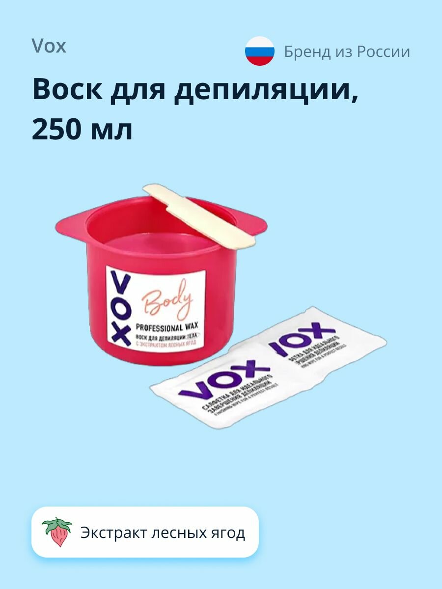 10 цен на VOX Воск для депиляции VOX для нагрева в микроволновой печи с экстрактом лесных ягод 250 мл,2 салфетки,1 палочка