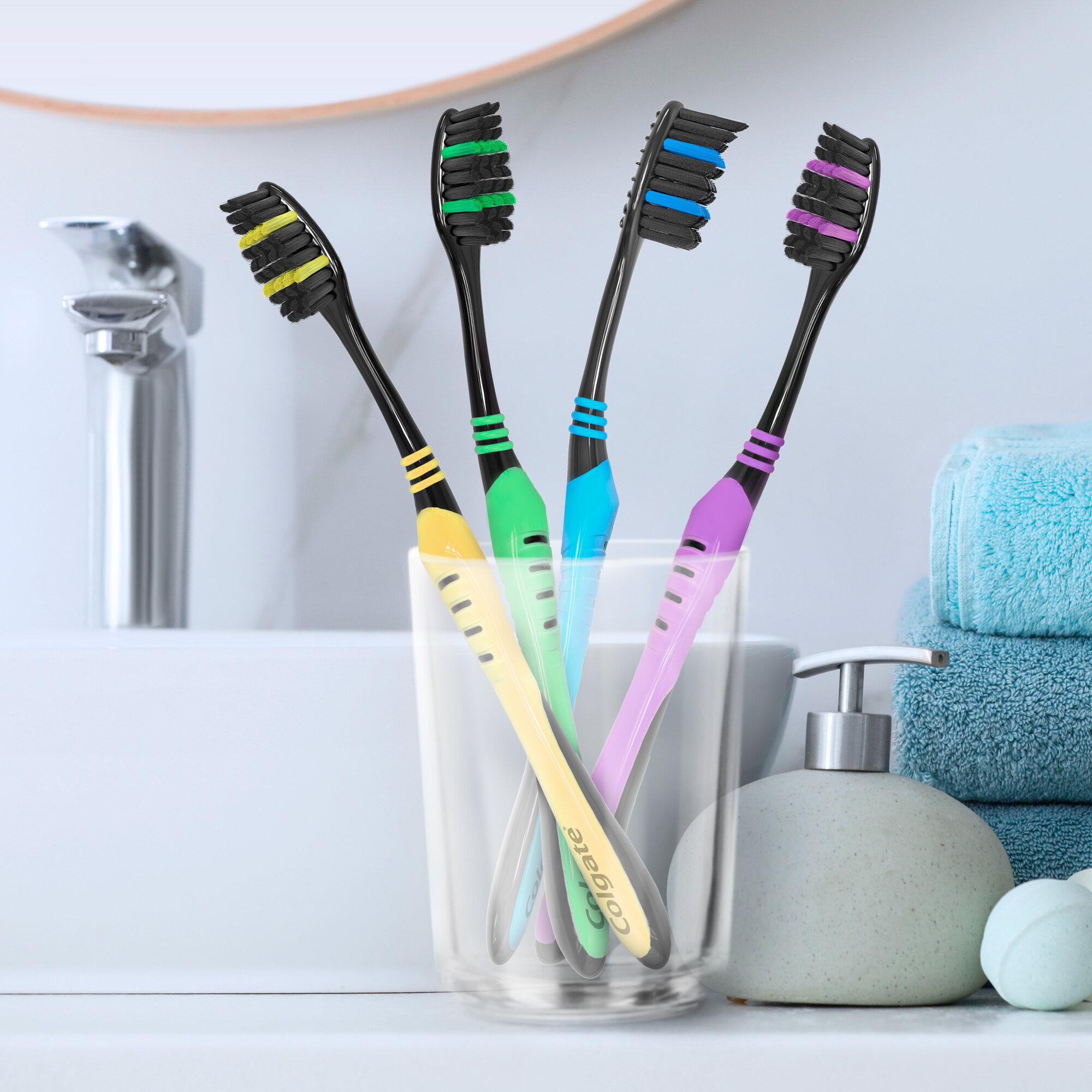 Зубная щетка COLGATE "Super Flexi Black" 4 штуки, средней жесткости