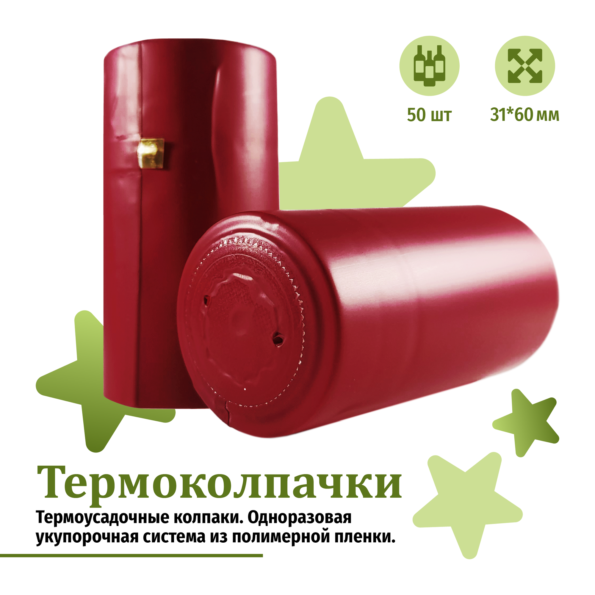 Термоусадочный колпачок для винных бутылок, 31х60 мм., красный, 50 шт. информация: