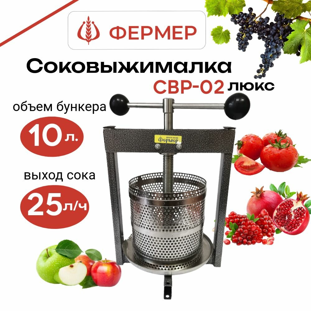 Соковыжималка пресс Фермер СВР-02 люкс для отжима сока из ягод, фруктов, овощей, объем 10 литров, пресс для сока информация: