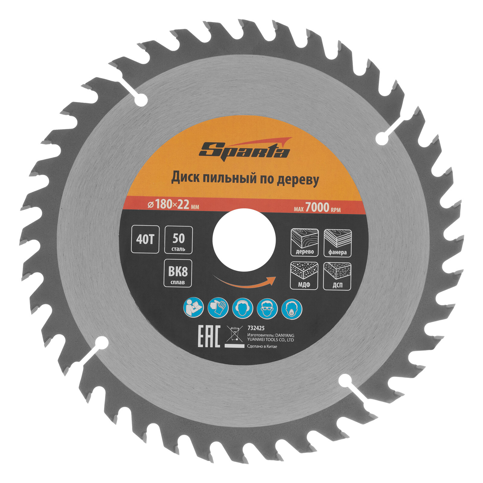 Пильный диск по дереву Sparta ф180 х 22 мм, 40 зубьев 732425 информация: