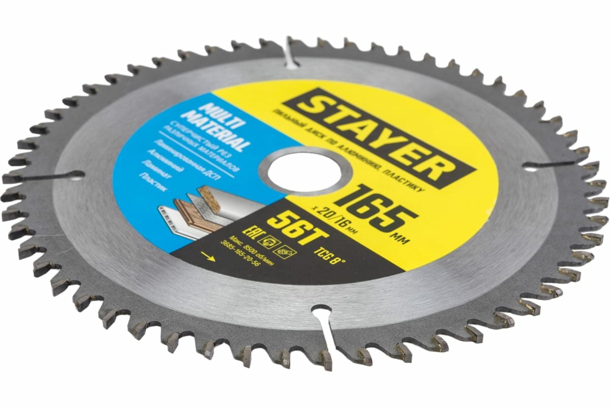 STAYER MULTI MATERIAL 165 x 20/16мм 56T, диск пильный по алюминию, супер чистый рез (3685-165-20-56)