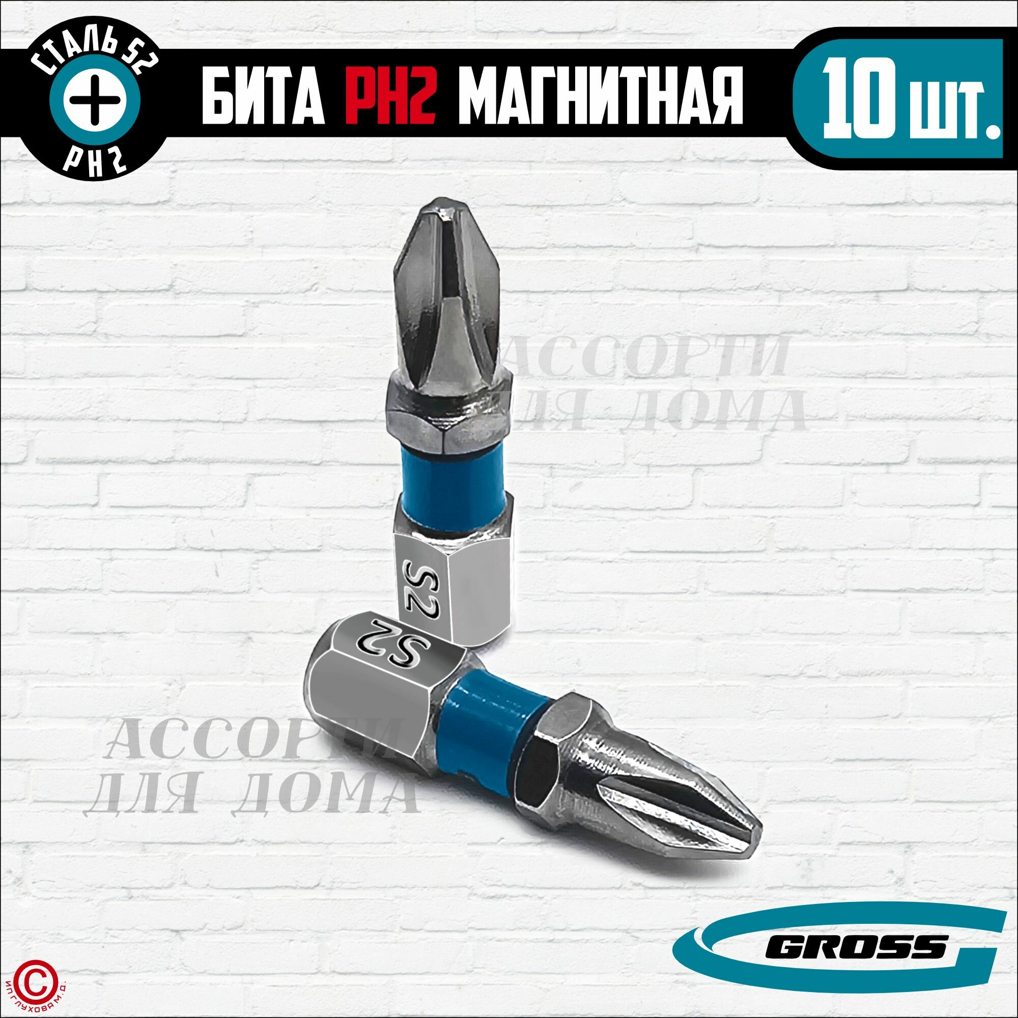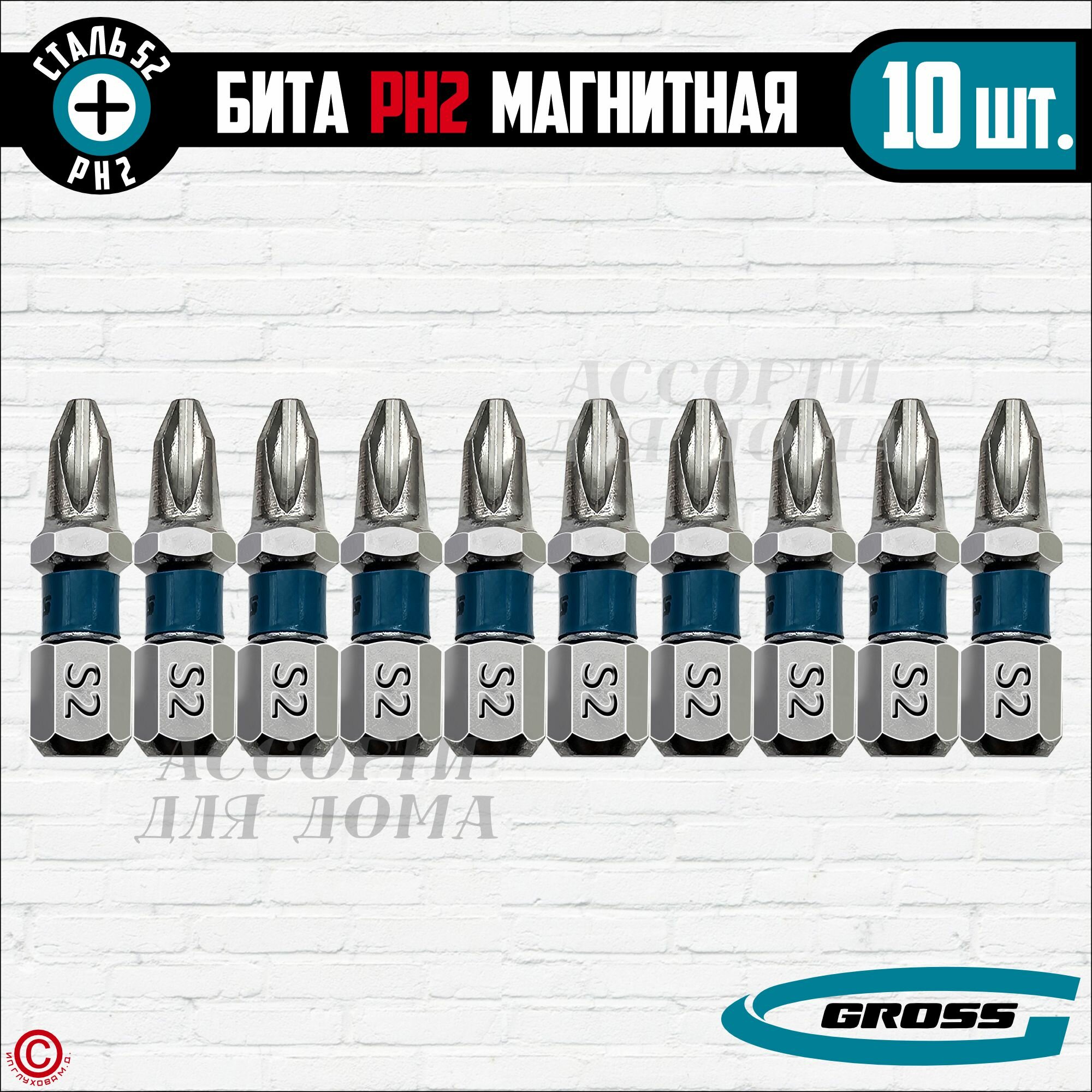 Биты для шуроповерта PH2 x 25 мм, сталь S2, 10 штук/ набор бит Gross информация:
