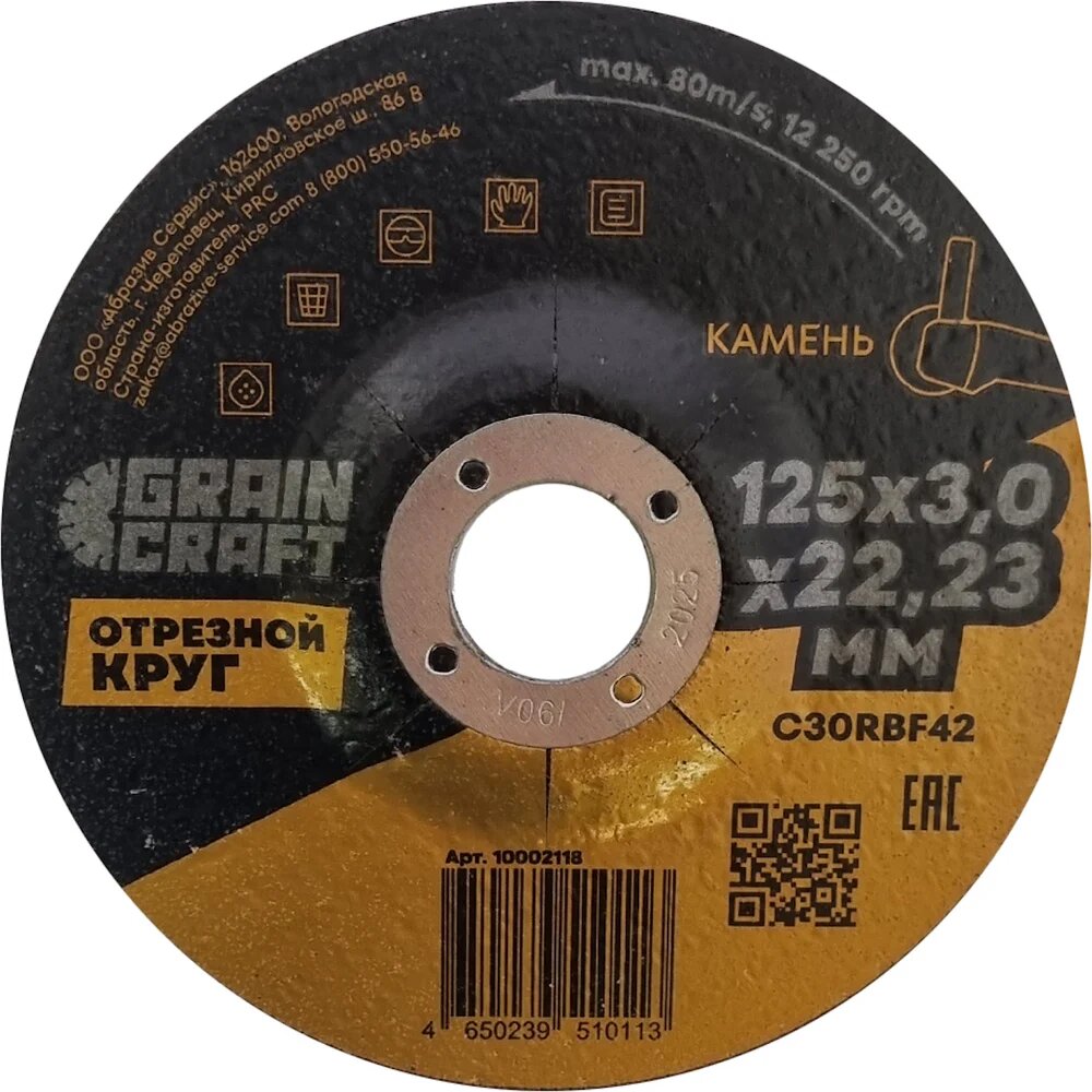 Отрезной круг GRAINCRAFT тип 42, по камню, размер 125x3x22.23 мм информация: