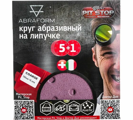 Abraform Шлифовальный круг на липучке "" от "Мастерская Pit_Stop и Доктор Дью". Набор COARSE 150-15 информация: