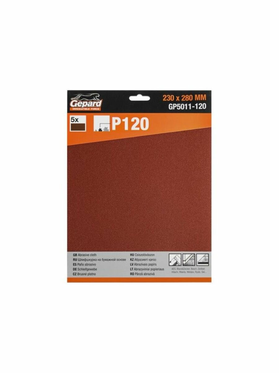 Шлифлист GEPARD (GP5011-120) 230х280мм Р120 бум.осн. 5шт. (бумага наждачная абразивная, лист шлифовальный абразивный, шлифшкурка)