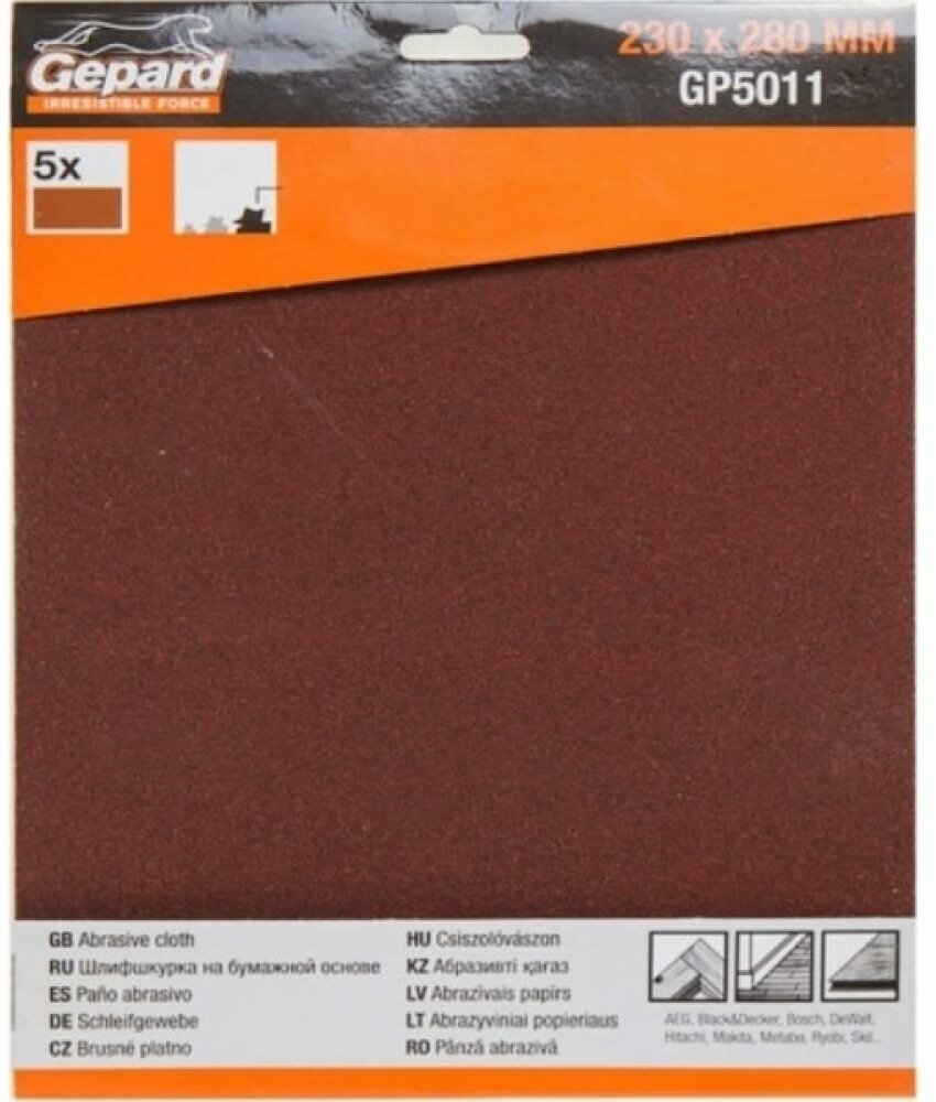 Шлифлист GEPARD (GP5011-120) 230х280мм Р120 бум.осн. 5шт. (бумага наждачная абразивная, лист шлифовальный абразивный, шлифшкурка)