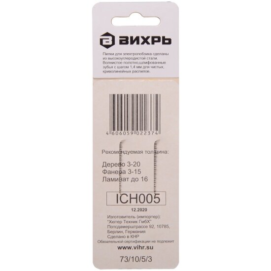Пилки для лобзика Вихрь Т101АО по ламинату, чистый, криволинейный рез 76х50мм (2 шт) информация: