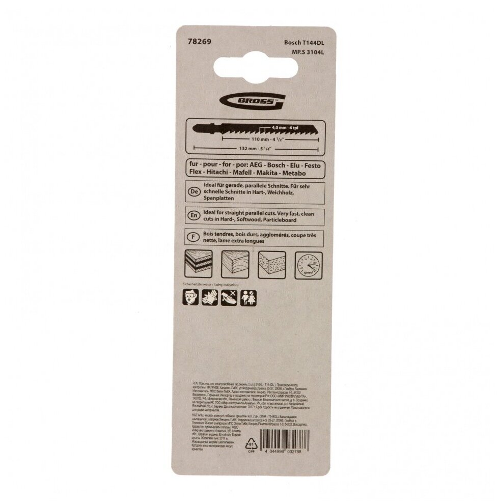 Полотна для электролобзика по дереву, 2 шт, ( 3104L-T144DL ) Gross информация: